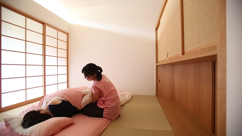 居心地が良かったお腹の中から知らない場所へ。何もわからない中、不安で泣くわたし。ただ頼れるのはお腹の中で聞いた声の人。産まれたばかりで肉眼では何も見えていないが、心の目から見えているような、そして母の発する言葉も感覚で理解している、そんな想像が浮かびました。そんな状況であるべき空間とは?また母親にとっては無事出産した安ど感、これから始まる子育ての不安などが入り混じった気持ち。そして出産後の体調を養生する場所でもあります。そんなことを想っているとき、ある画家が浮かんできました。