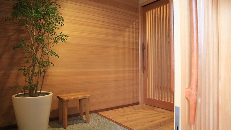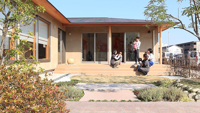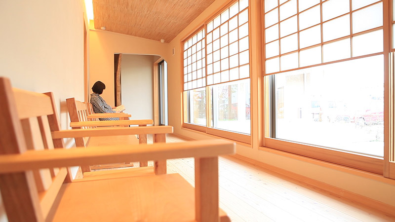 普段、患者として利用している病院・医院の建物に対して色々思うことがあります。詳しく記しませんが、そこから導き出したコンセプトは、“静かで、あたたかな場所”。外観は建物の高さを抑えひさしを廻すことで大きく見せず、こうべを垂れるように患者さんを招き入れるイメージです。また建物とは硬いイメージですが、やわらかく親しみを感じてもらえるように外壁の素材、色にも配慮しています。室内へは靴を脱いで素足ですごす方式。直接床に触れ、素足で居ることと、靴やスリッパで居ることは日本人にとって建物との親密さが実は全く違うからです。室内空間は建物と患者さんの“心の温度”にブレが出ないように意識しデザイン、素材を決めていきました。開業後、ここで働く方からこんな感想をいただきました。過去に務めていた病院では待合室で母親と一緒に来た子が早く帰りたいと泣いる子が常にいたそうです。しかし、ここに来た子で泣く子はなく、皆笑顔で遊びまわっているそうです。一番の誉め言葉だと勝手に解釈しております。