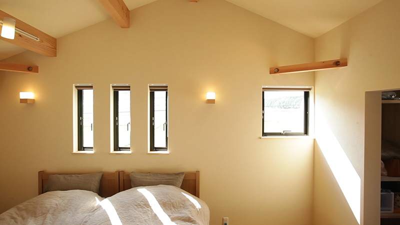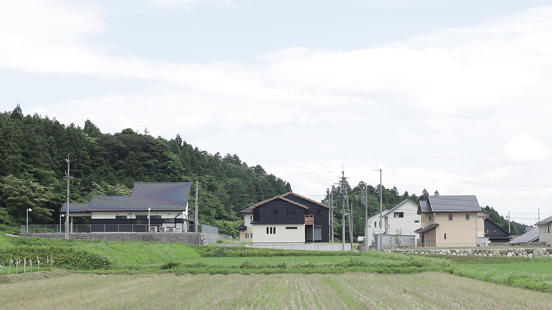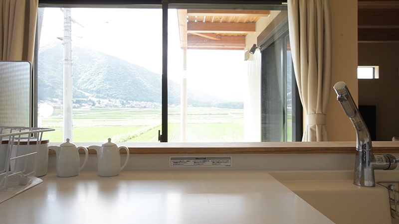若いご夫妻の場合、生活経験が少ないぶん機能性より、デザインに関心が行きがちです。そこで機能面は主にフォローする形で提案させていただきました。表動線と裏(生活)動線の二つの動線の確保の重要性を説きながら丁寧に進めました。敷地ロケーションが素晴らしいため、この景色を室内に素直に取り込めば、うまくいくと思い、そのため窓の位置と大きさに配慮しながらの設計。外観は、新しい造成宅地ためか周りの家がバラバラの佇まいでした。時間をかけて悩みましたが、裏に建つ白黒の外壁の建物に色を合わせることによって一体感持たせました。不思議なことに、そのあとに建てられた南、東隣地の家も白黒の外壁に。おかげで、この家の周りは統一感あるものとなりました。いつも穏やかなご夫妻、ある件でご迷惑おかけした時、感情的になられてもおかしくない場面でも冷静に弊社を信頼して頂き本当に頭が下がる思いでした。あと奥様のお母様がとにかくお元気な方、休日、突然手作りピザを作って持って来られたときはびっくりしましたが美味しかったです、お母さん、お元気でしょうか。