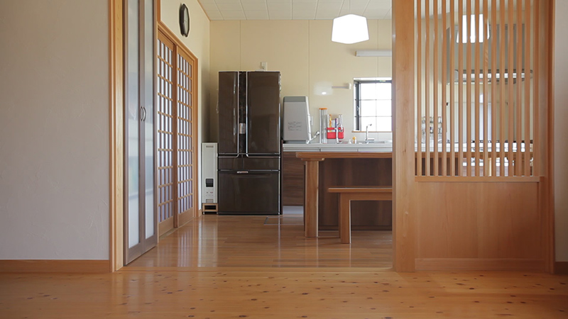 1度目の工事は主にLDKリフォーム。既存の間取りは昭和のスタンダード。冬寒い北側に台所と食堂室、日当たりの良い南側に応接間という名の個室と普段殆ど使われない縁側、和室がありました。それをリフォームにより応接間だった所に二人暮らしを意識した、コンパクトで収納にこだわったダイニングキッチンへ。目の前に広がる美しい田園風景を室内に取り込むため縁側を無くして和室をリビングに改修しました。