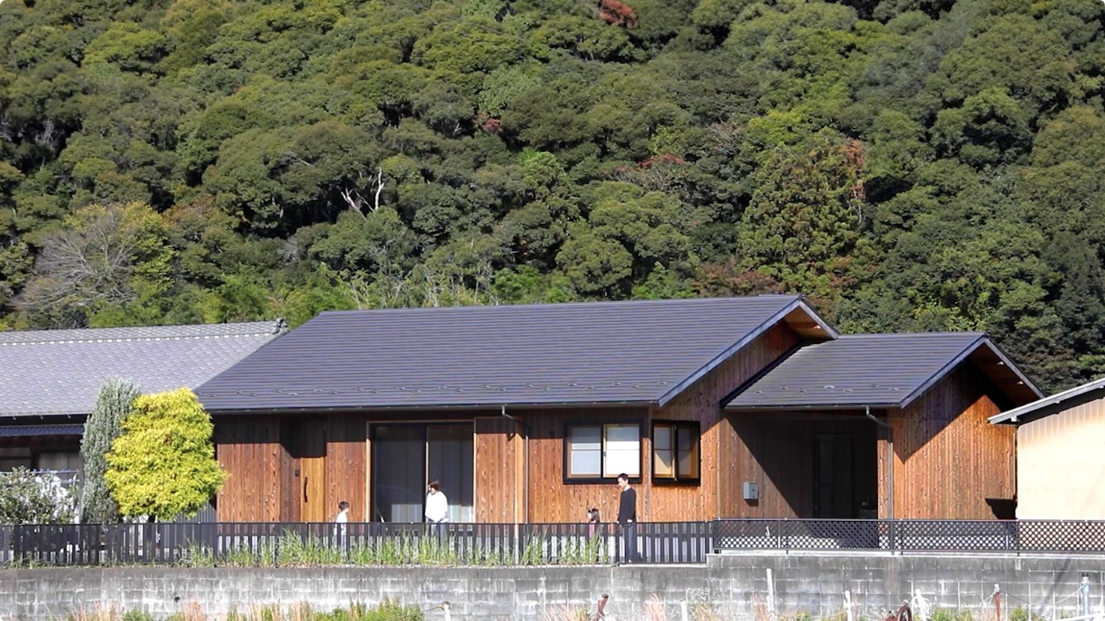 由緒ある神社の参道沿いの場所。初めて建設地を訪れたとき、背景に佇む山に畏怖を感じずにはいられませんでした。おそらく、この周辺に住まいを構えた先人達も同じ思いを抱き、この山を祀るところから神社が出来たのではと想像。そう考えるとこの山に寄り添う佇まいにと自然と意識しました。
