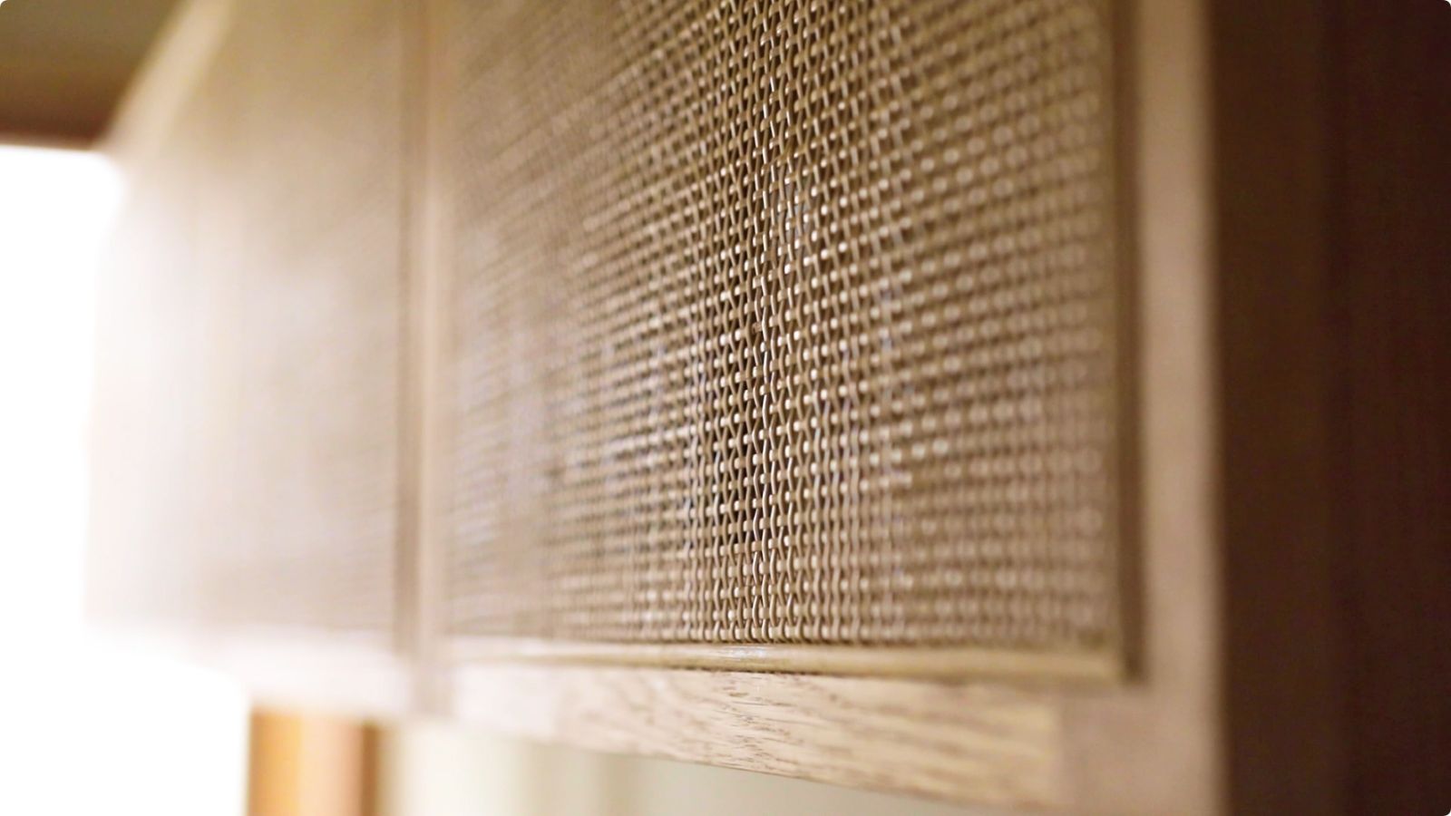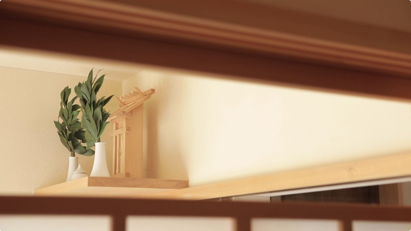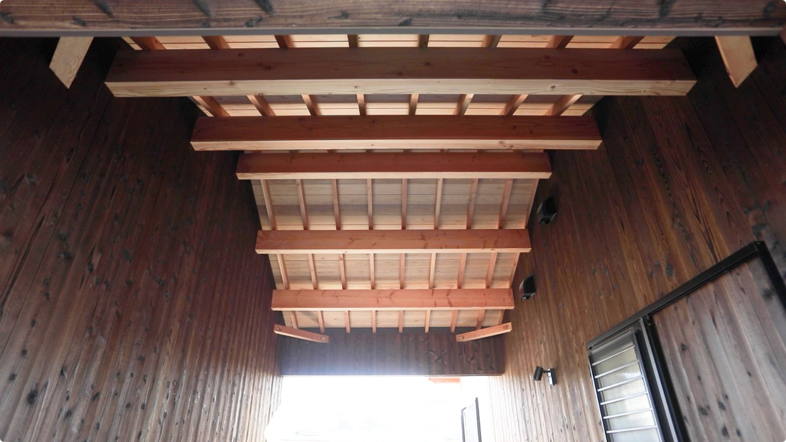 同じ敷地に母屋があり、家族同士のコミュニケーションが自然に進む窓口として、土間の窓がその役割を果たします。この窓の雨戸は可動ルーバー型。夏、ルーバーの角度を調整することで室内に入る陽射しをやわらげ、外部の視線も遮りながらも通風は確保。雨戸を施錠すれば窓を網戸のままにしても風を通せるため、留守中でも安心です。